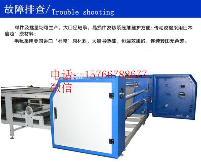 3. Single piece and batch production, large diameter bearings, vulnerable parts and heating system are easy to maintain; The driving cots are made of Japanese "Xinyue" raw materials; The blanket is made of DuPont raw materials imported from the United States, with a large amount of heat transfer oil, good constant temperature effect and no color difference in continuous transfer printing.