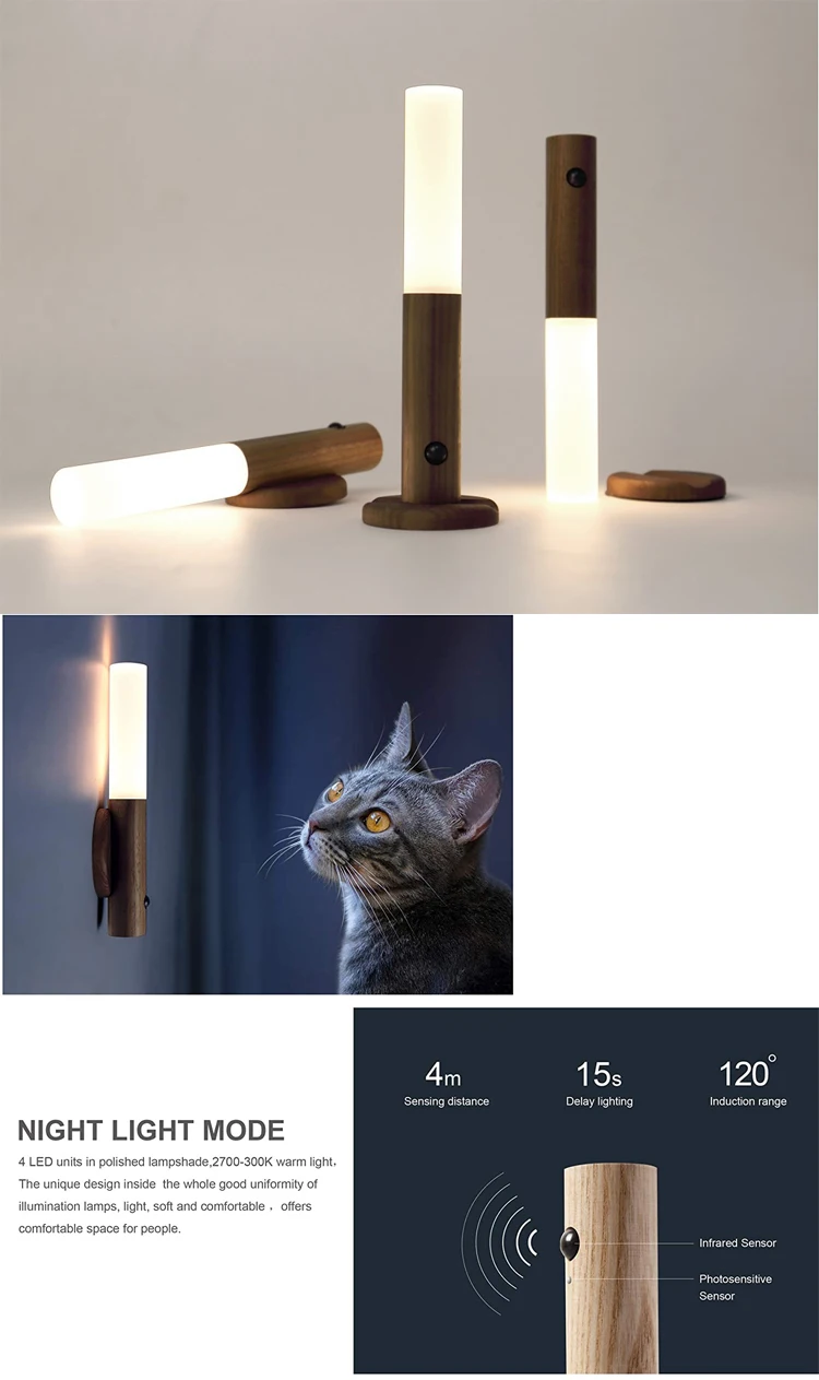 ★Type: Ash Wood Package Content: 1 x Motion Sensor Light 1 x Mounting Base 1 x USB Cable