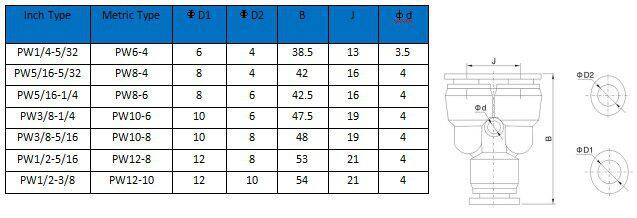PW Series 3 Way Y Tee Variable Diameter Pipe Fitting Plastic Pneumatic Fittings