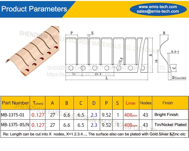 Highest Strength Copper Alloy With High Cycle Time Beryllium Copper Fingerstrips Shielding Gasket