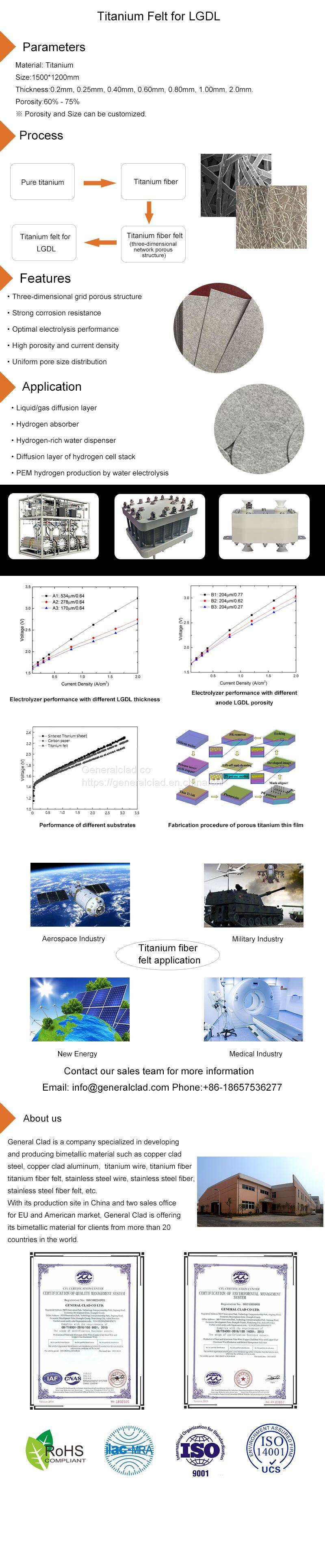 Titanium felt, a diffusion layer material, provides electrons between the catalyst layer and the bipolar plate or the current distributor on the anode side. Due to its three-dimensional network porous structure, high porosity, high corrosion resistance and other characteristics, titanium felt has become one of the best materials of diffusion layer in fuel cell and hydrogen production by water electrolysis.