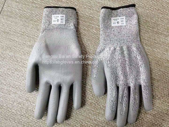 Cut Resistant Level 5 HPPE Liner PU Coated Anti Cut Gloves With EN388 4543C Bagloves