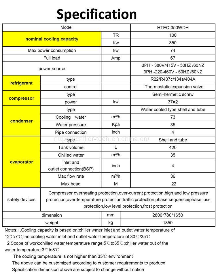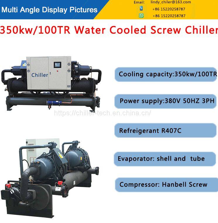 Competitive Price 100TR 350KW Water Cooled Screw Chiller With Two Hanbell Screw Compressors