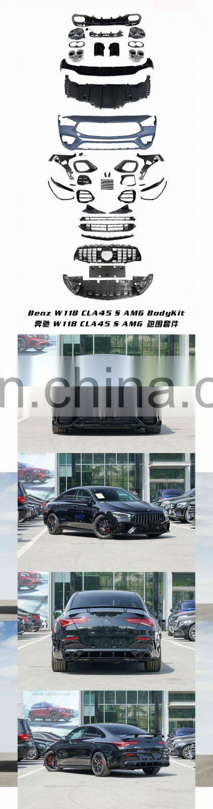 100% Fit Complete Car Body Kit Include Front Bumper Assembly GT Grille Tail Lip Tail Throat for Mercedes Benz CLA W118 up to AMG