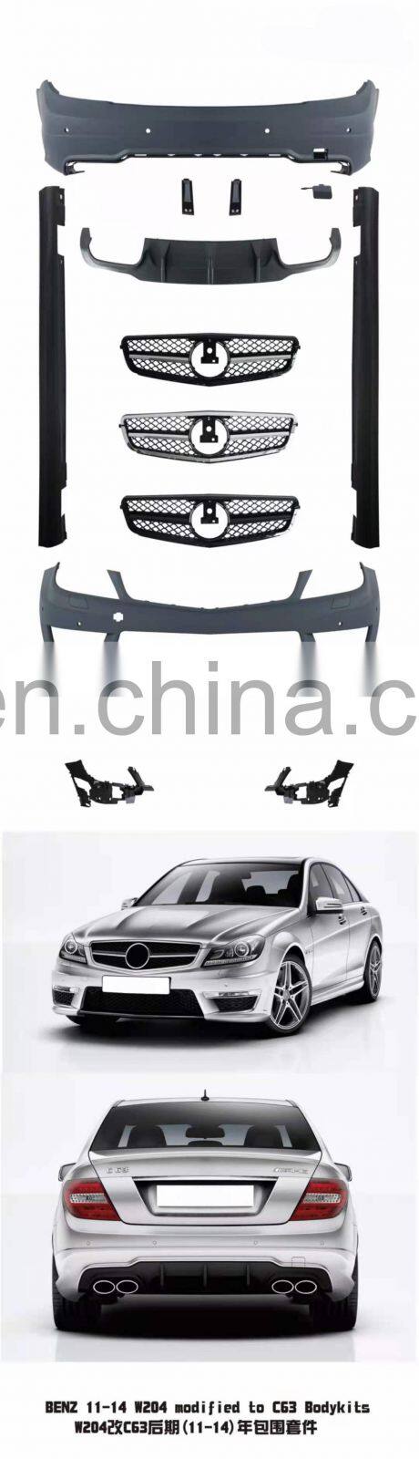 High Quality Auto Parts for Mercedes Benz C-class W204 2013 204 2015 Upgrade to C63 AMG Style With Side Skirt Tail Lip Bumpers