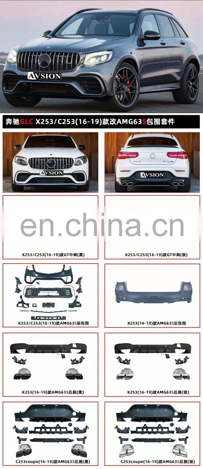 For X253 Modified GLC63 AMG Body Kit Include Front and Rear Bumper Assembly With Grille Tip Exhaust for Mercedes Benz GLC-class