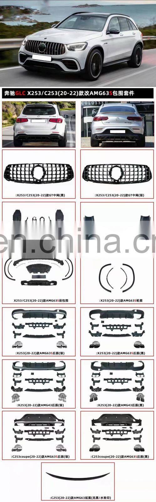 Car Bumpers For Benz GLC X253 2020 2021 2022 SUV Turning to GLC63 AMG Grille Lining Wheel Arch Diffuser Tips Wide Body Kits