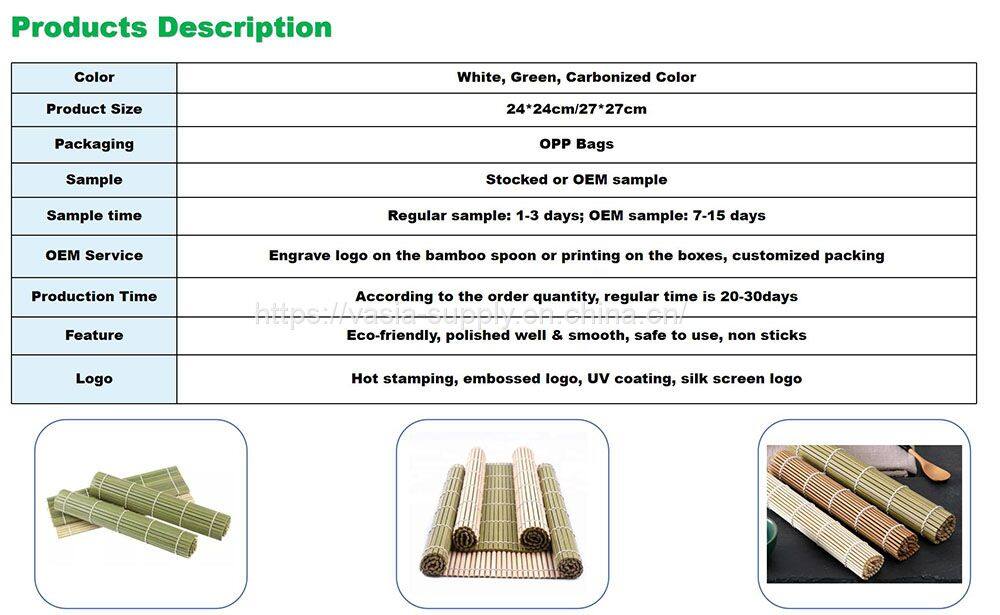 Chinese Supplier Factory Selling Hand Craft Green Bamboo Sushi Mat Supplier