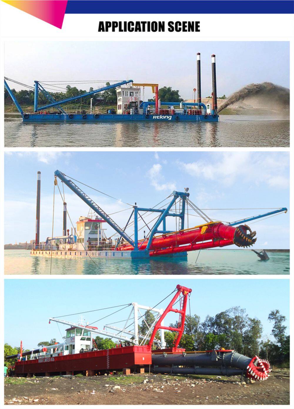 Relong Technology Co., Ltd. is located in Qingdao City, Shandong Province. It is a company dedicated to intelligent robots, ship design, water transportation equipment, marine water quality and ecological environment testing, salvage services; industrial automatic control system devices, radar and supporting equipment, communication equipment, which is a high-tech enterprise integrating sales and artificial intelligence software development, including consulting, design, production, installation, and operation management. Relong provides one-stop customized service according to each client's different dredging site condition. Professional design, international welders welding work, professional field service and after-sale service are the foundation of Relong brand equipment high quality and high reputation.