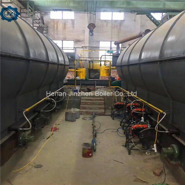 After condensation, some of the gas that cannot be condensed is called exhaust gas, and the exhaust gas passes through a safe setting--water seal. (The function of the water seal is to prevent the open flame from returning from the combustion chamber and exploding with the exhaust gas), and return to the heating chamber for fuel heating. Hearth. Therefore, at the beginning of the operation of the equipment, the fuel is coal or wood. When the temperature rises to 220 °C - 270 °C, the exhaust gas can be used as fuel. In general, the fuel required per ton of used tires is 60kg.