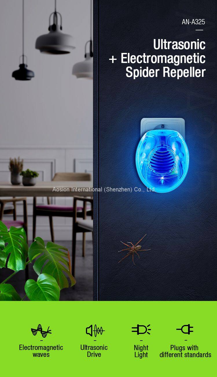 1. This electronic spider repeller does not use any chemical substances. It will emit the ultrasonic and electromagnetic to repel the unwanted pest out off your home, warehouse, hotel, supermarket, garages, office, etc..