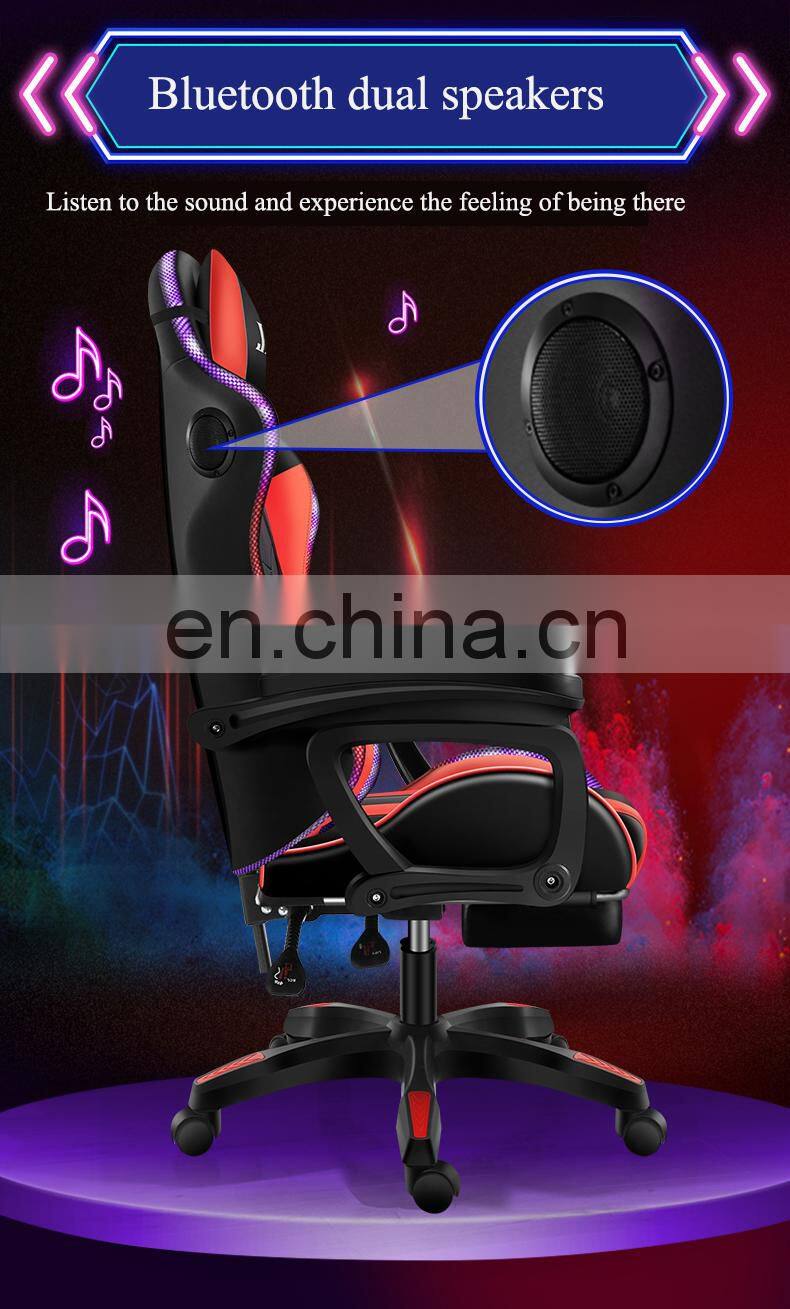 Promotion Competitive Sale Massage RGB LED Racing Silla Gamer Chair PU Leather Computer Gaming Chair With Lights and Speakers