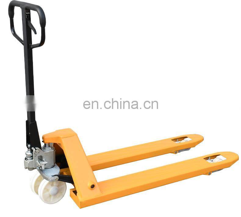 Easily Use Good Industrial Hand 3.5T 685 Nylon Wheels Four Wheel Fork Lifter Hydraulic Pump Hand Pallet Truck From China