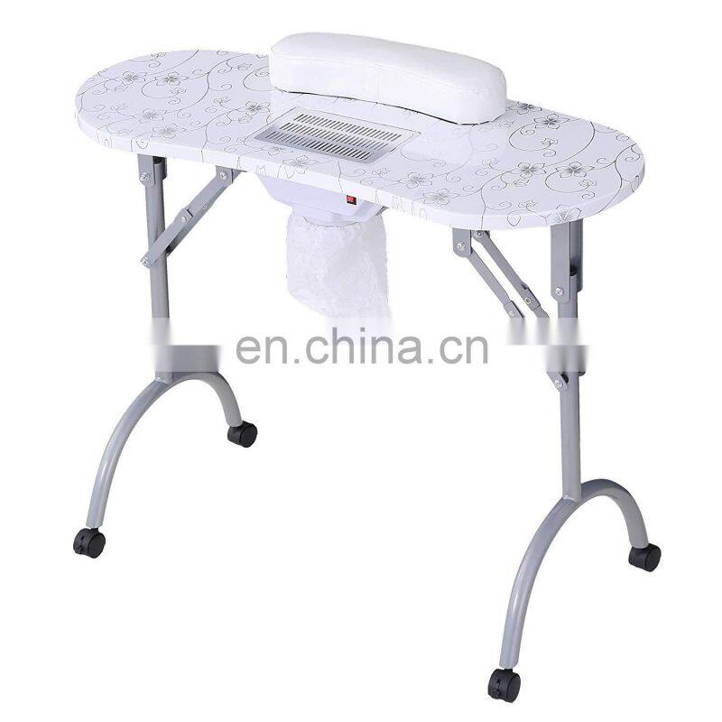 Minewill Portable White Nail Table Travel Recargable Manicure Table Salon Furniture Vacuum