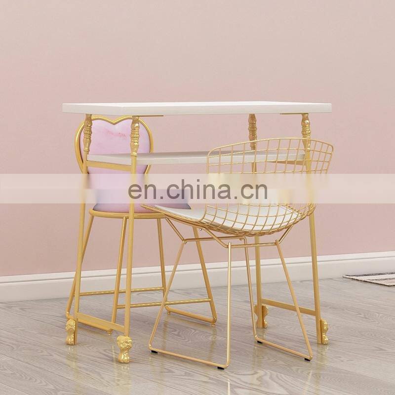 Factory High-end Iron Marble Manicure Table And Chair Modern Luxury Beauty Salon Nail Table In Sale