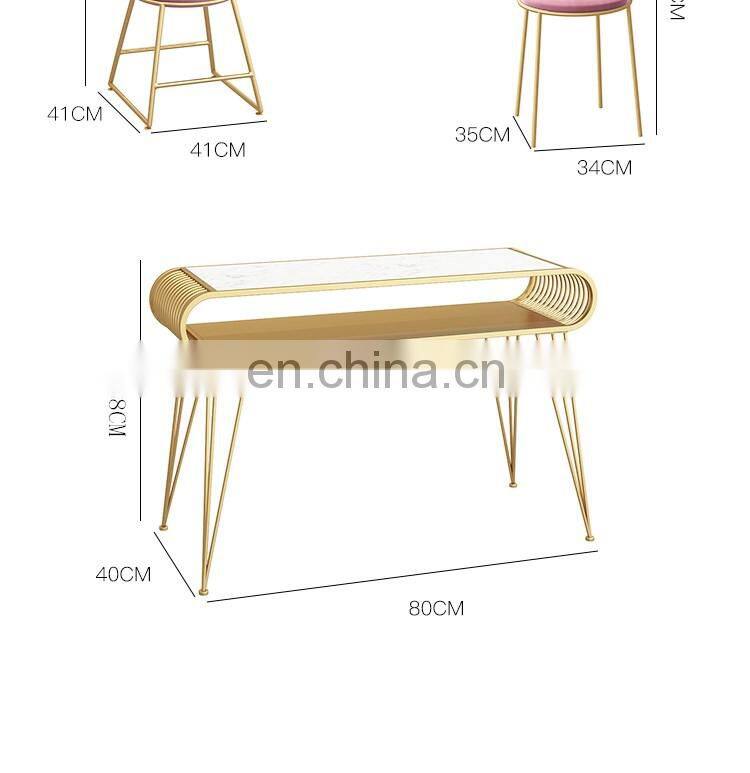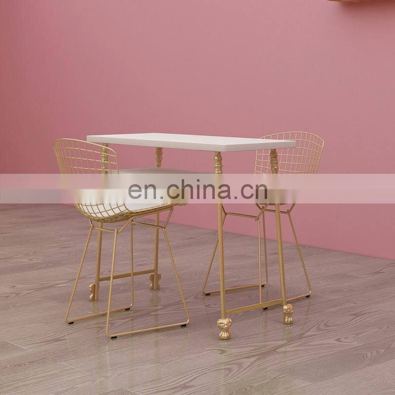 - Marble Nordic Style Manicure Table for Nail Shop,Double Wrought Iron Table and Chair Set