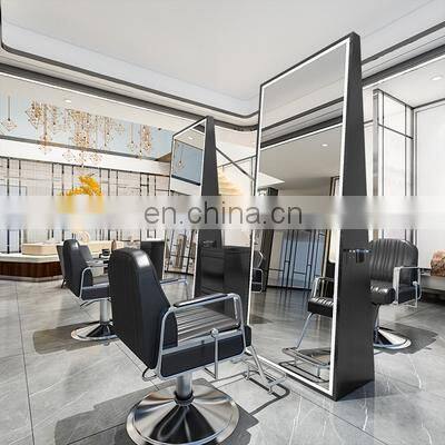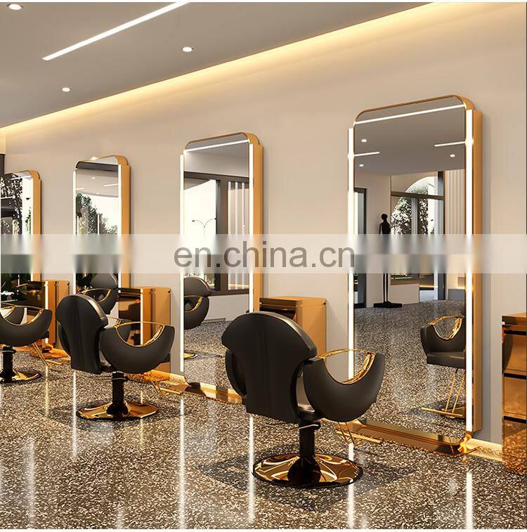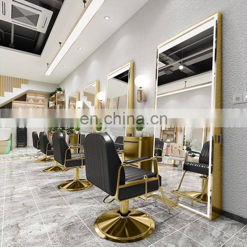 European Wall Mirror Beauty Salon Hairdressing Gold Led Lighted Black Aluminum Framed Mirror