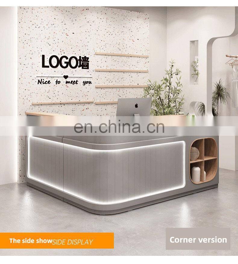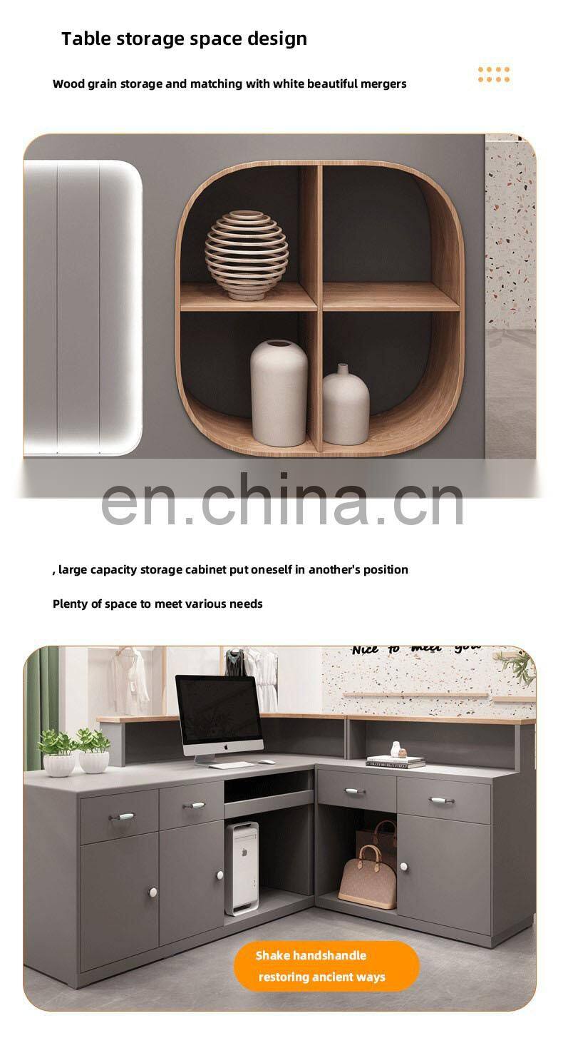 - Custom Special Shapes Front Desk Wood Salon Counter Hotel Salon Spa Reception Desk for Sale