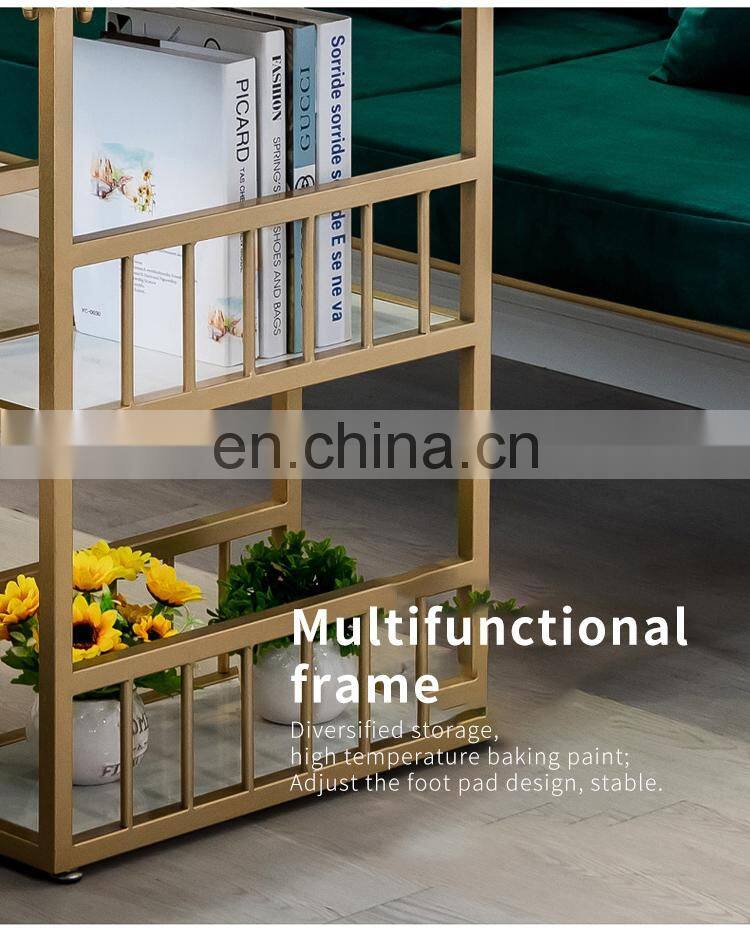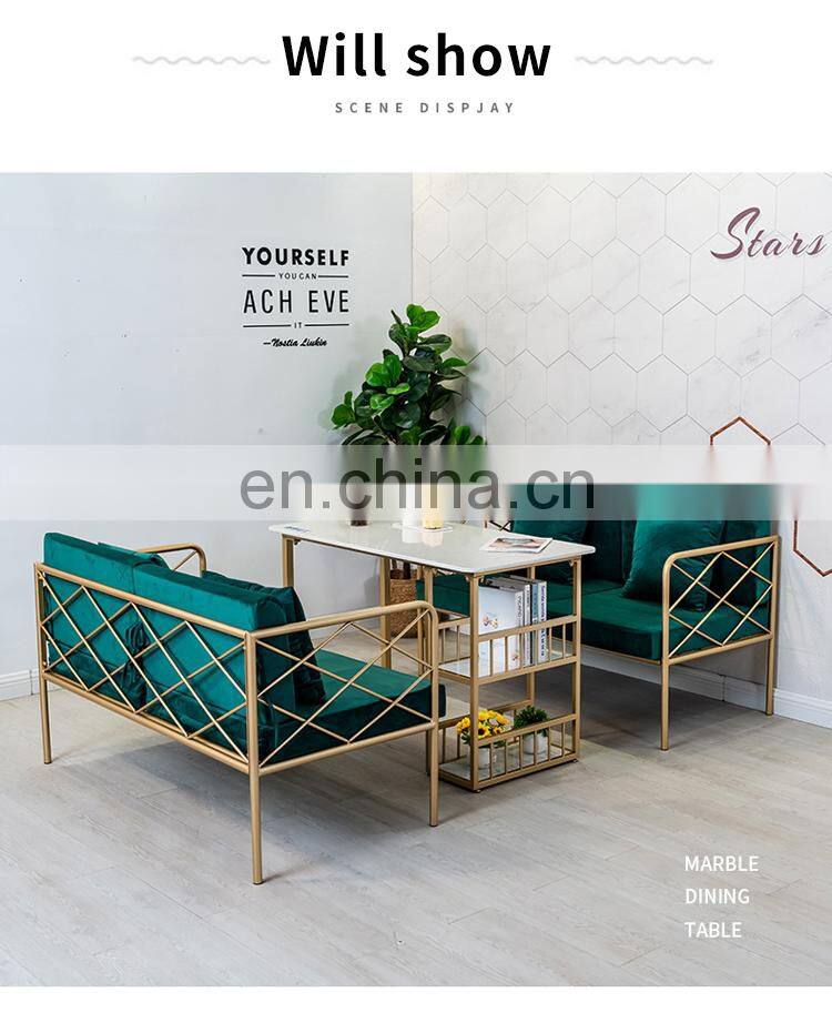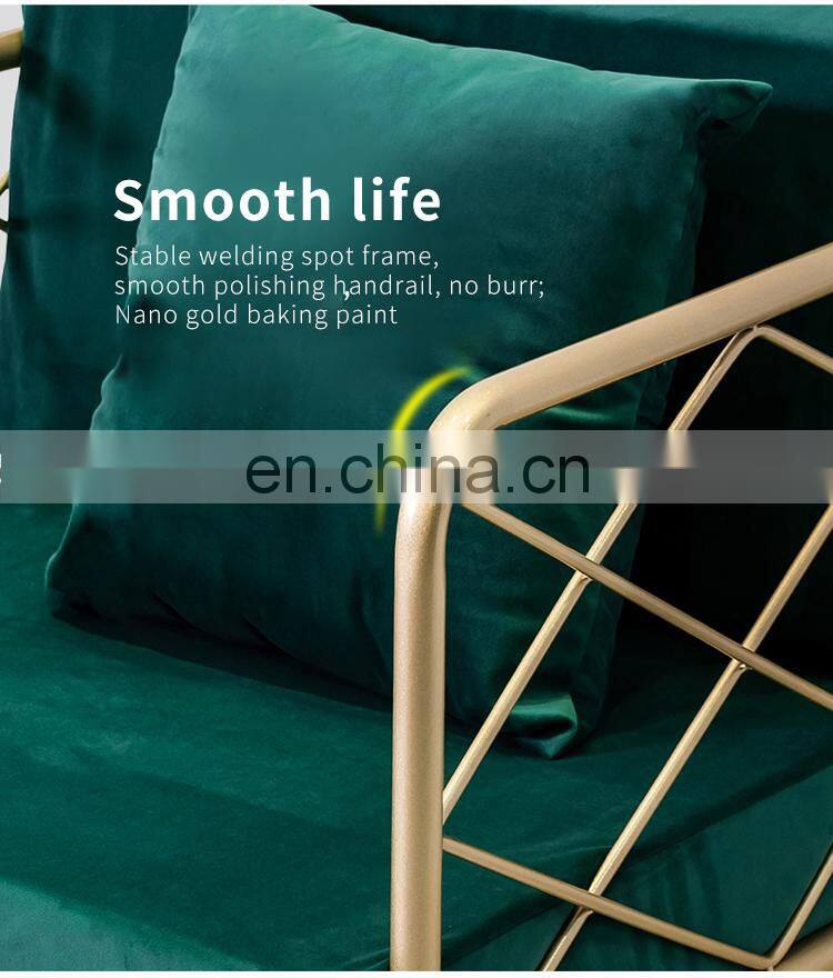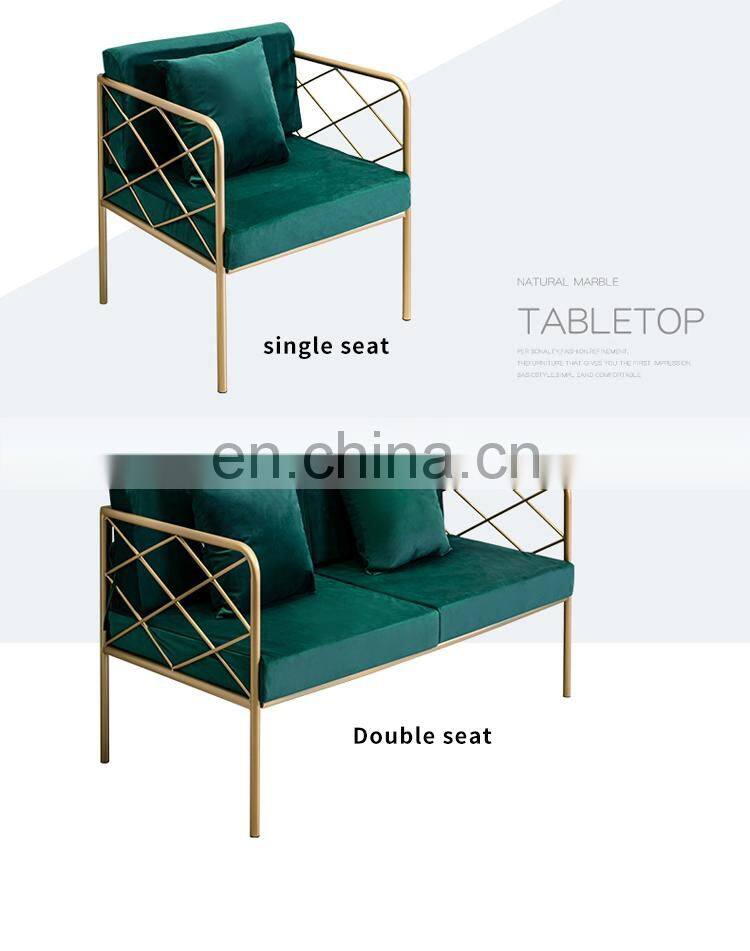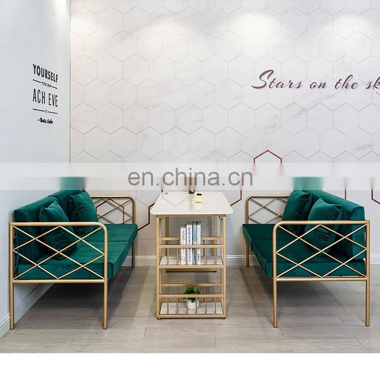Beauty Hair Salon Gold Metal Frame Waiting Velvet Leather Living Room Sofa For Reception