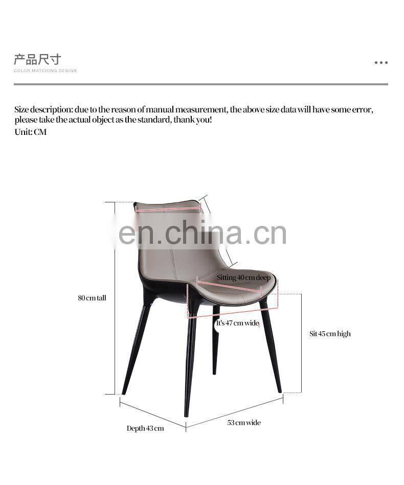 Contemporary Nordic Modern Metal Legs Dining Leather Chairs
