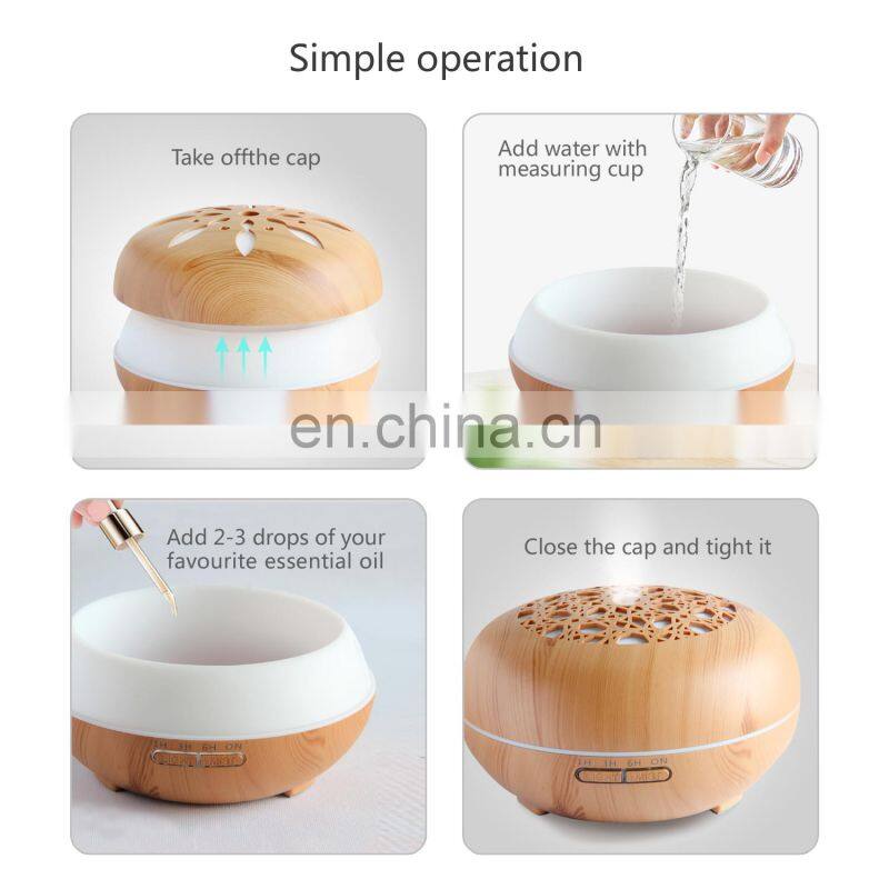 Artic Oak Humidifier Oil Diffuser Factory White Wood Romantic Light Ultrasonic Aroma Diffuser