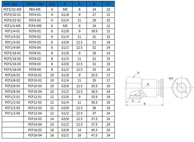 Thread size | M5,1/8”,1/4”,3/8”,1/2” | |||||||