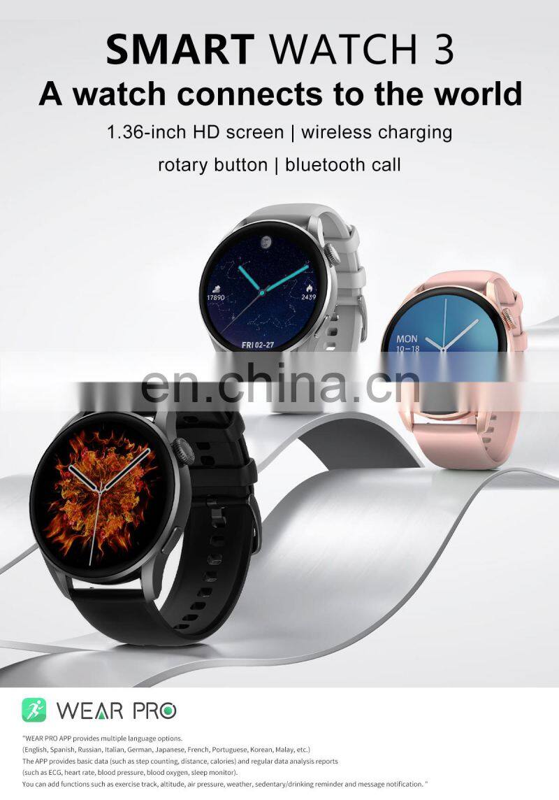Smartwatch Bt Call Wireless Charging Smart Watch Round Rotary Button Ecg Heart Rate Health Tracker Sport Wristband