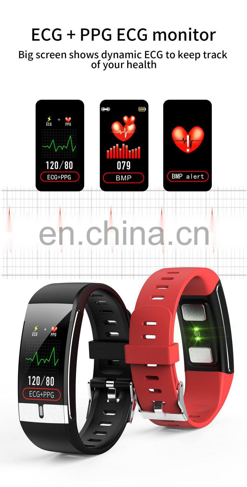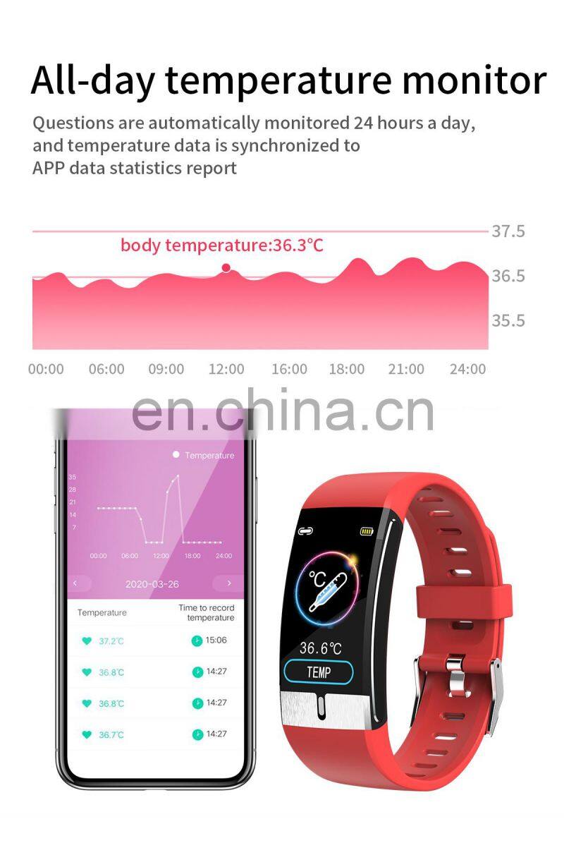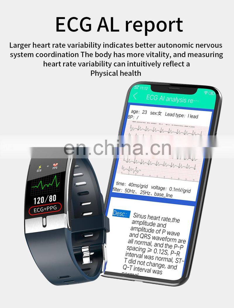 Main Feature | Temperature monitoring function, ECG function Health monitoring of heart rate, blood pressure and blood oxygen Environmental protection TPU strap, no sense of wearing. HD resolution 1.08 color screen, dynamic and simple UI interface. Multi Sport mode (running, cycling, swimming, badminton). Sleep monitoring. Global font content push, Turn over the wrist and light up the screen automatically USB plug and play charging (without data cable) | ||