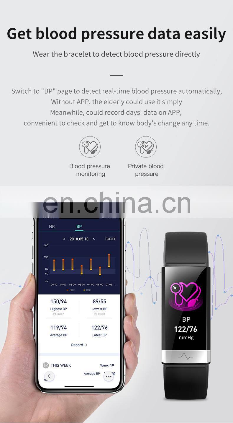 Home > Products > All smart wearable > ECG PPG Heart Rate Monitor Fitness Tracker Smart Bracelet Blood Pressure Monitor Smart Watch SPO2 Fitness Tracker V19