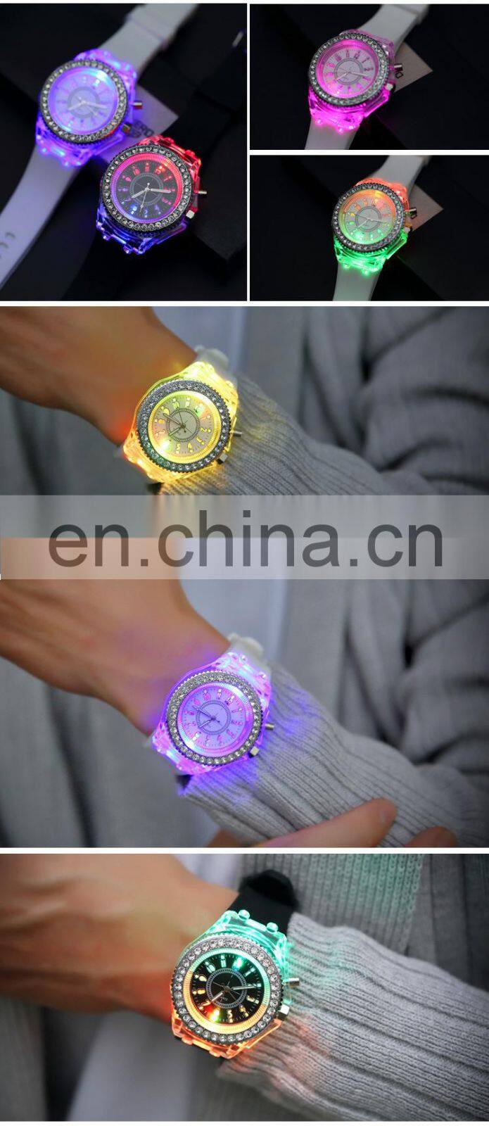 N771 Children Student Colorful Geneva Quartz Digital Silicone Watches Flashing Sport Luminous LED Light Watch
