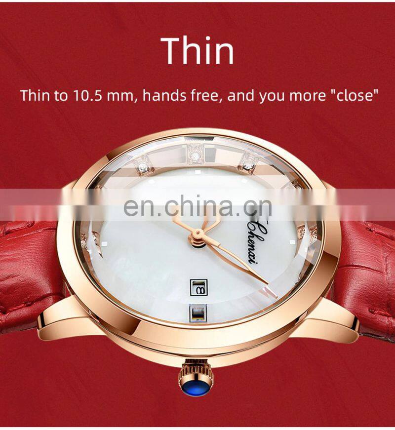CHENXI 091A Fashion Casual Quartz Wristwatches Brand Roman Numeral Dial Luxury Leather Band Analog Waterproof Ladies Watch