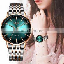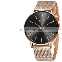 LIGE 10037 Fashion Stainless Steel Quartz Watch Bracelet Clocks Luxury Ladies Women Waterproof Rose Gold Steel Strap Wristwatch