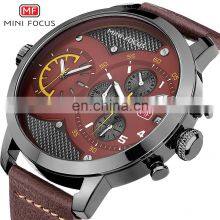 MINI FOCUS MF0030G Fashion Casual Quartz Wristwatch Men Military Pilot Luxury Dual Time Zone Oversize Leather Waterproof Watch