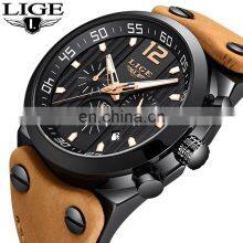LIGE 9890 Fashion Casual Luminous Quartz Wristwatches Leather Luxury Waterproof Sport Chronograph Men Male Clock Man Wristwatch