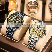 LIGE 8942 Hollow Casual Quartz Watch Men Luxury Moon Phase Date Clock Stainless Steel Waterproof Chronograph Sport Wristwatch