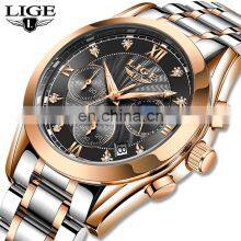 LIGE 8955 Fashion Casual Chronograph Calendar Quartz Watch Waterproof Shockproof Date Display Luxury Creative Wristwatch