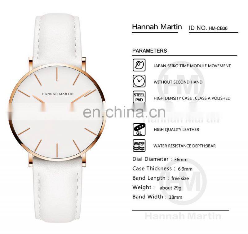 Hannah Martin CB36 Minimal Unisex Quartz Watch Dial Waterproof OEM Fashion Cheap Custom Logo Watches
