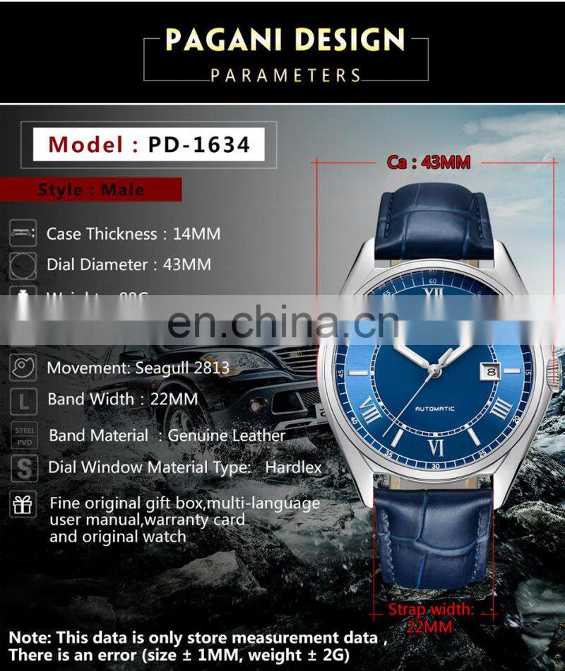 Pagani Design 1634 Minimalist Oem Men Mechanical Wristwatch Leather Custom Watch Logo Automatic