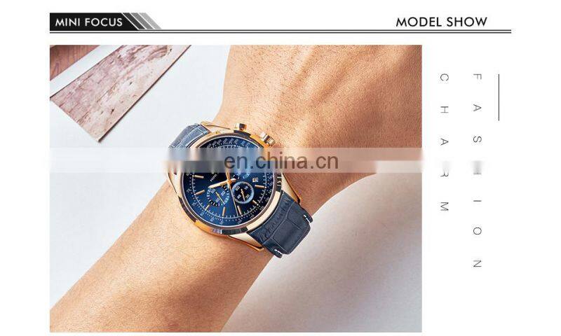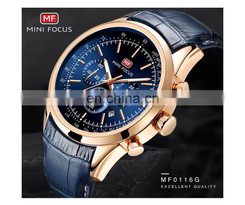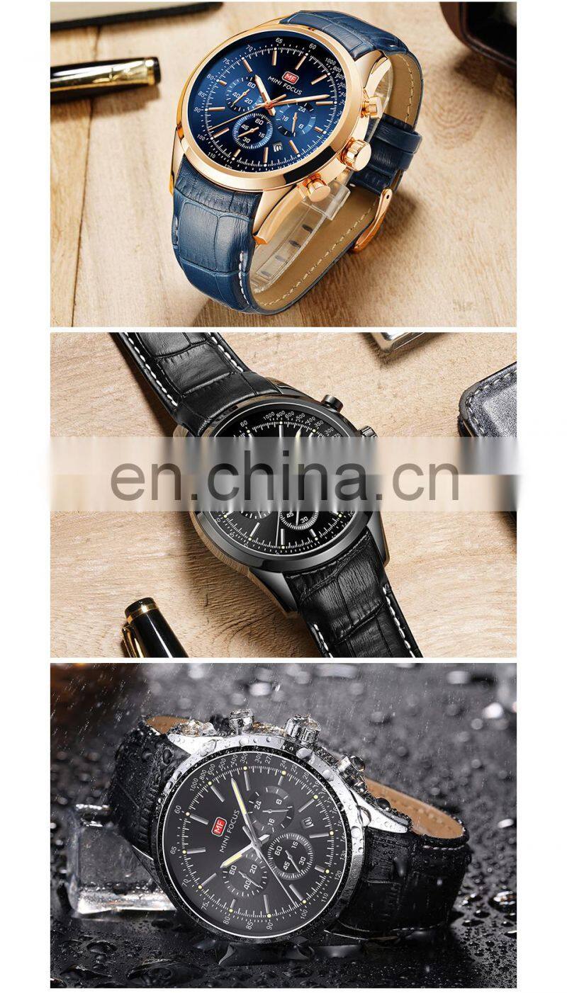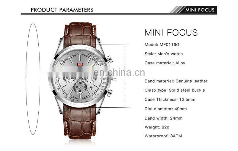 Mini Focus MF0116G Branded Quartz Watches Chronograph Leather Custom Logo Mens Watch Set