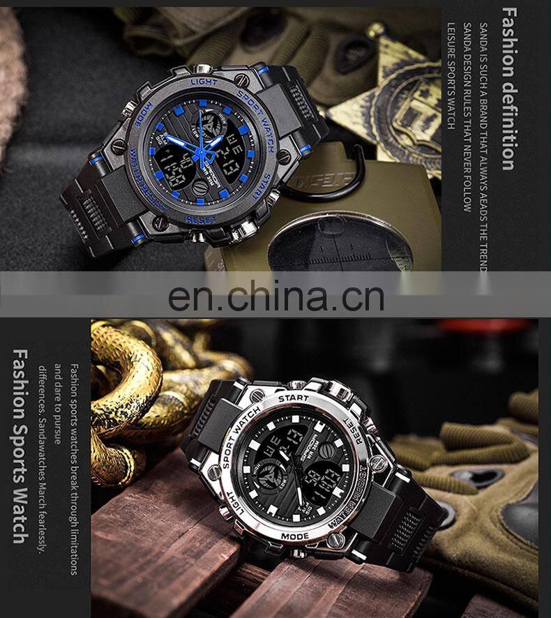 Sanda 739 Wholesale Design Mens Dual Display Watches Silicone Waterproof Digital Watch Custom Logo