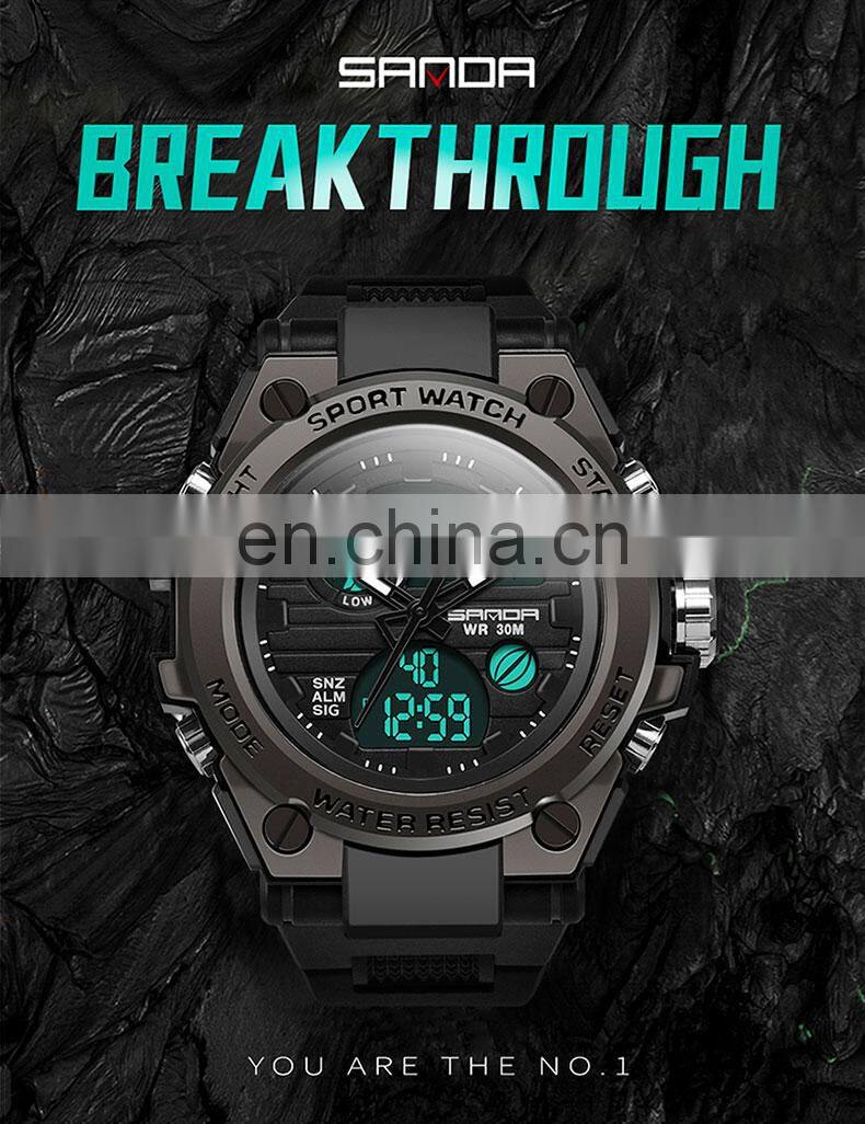 Home > Products > Popular Brands > Sanda 739 Wholesale Design Mens Dual Display Watches Silicone Waterproof Digital Watch Custom Logo