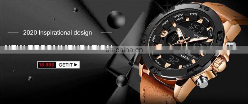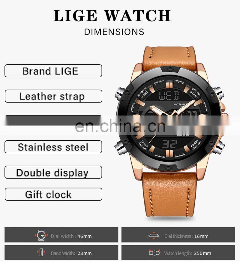 Lige 9964 Original Men Dual Display Watches WAter Resistant Sport Digital Display Customize Watch