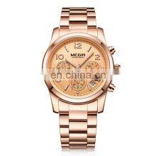 MEGIR 2057 Lady New Rose Gold Wristwatch Stainless Steel Luxury Brand Watches With Workable Dial