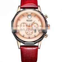 MEGIR 2042 Fashion Leather Wrist Quartz Ladies Watch Luxury Brand Chronograph Wrist Watch Women