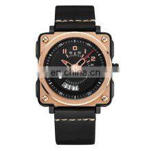 Megir 2040 Men's Square Leather Strap Quartz Watches With Calendar Date Waterproof Wristwatch Clock