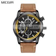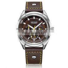 MEGIR 2072 Fashion Quartz Man Clock Name Brand New Watches Wholesale Leather Strap Watch