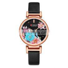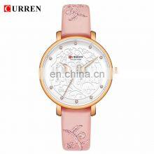CURREN 9059 Casual&Simple Leather Strap Ladies Watch Alloy Case Flower Women Wrist Watch