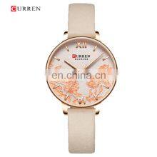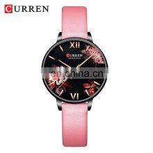 CURREN 9046 Women Simple Flower Pattern Elegant Watches Ultra Thin Dial Quartz Leather Fashion Wristwatch