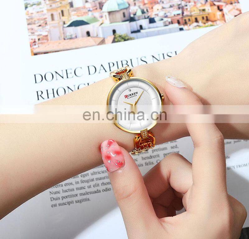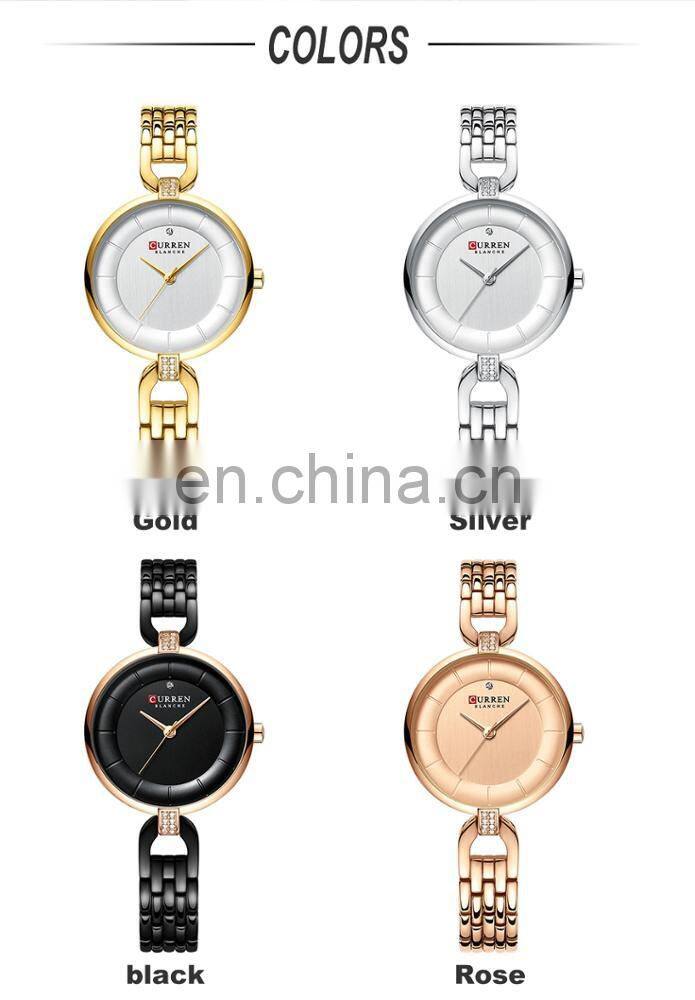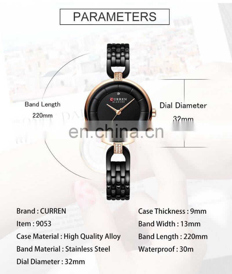 CURREN 9051 Women Crystal Diamond Quartz Watches Stainless Steel Simple Bracelet Elegant Watch Ladies