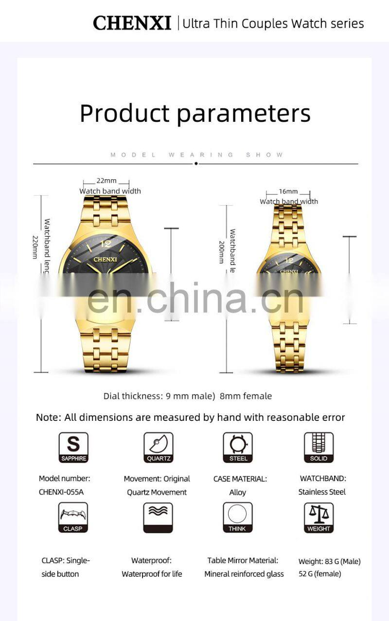 CHENXI 055 Couple Watches Quartz Men Women New Fashion Full Steel Waterproof Drop Shipping Ladies Wrist Watch Relogio Masculino